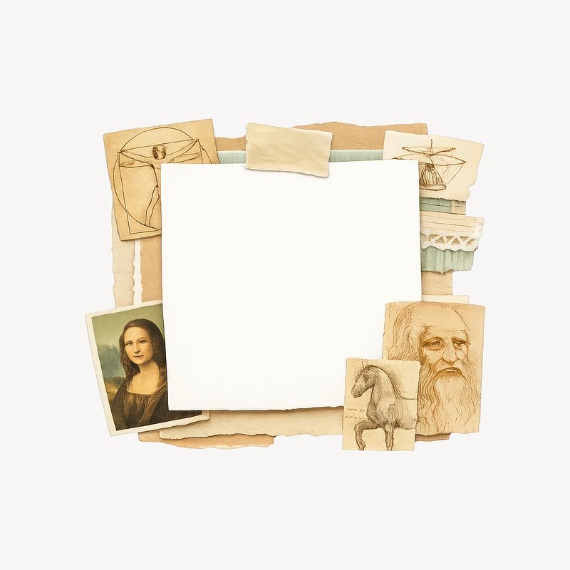 PNG Vintage collage with Da Vinci art. https://www.rawpixel.com/image/25618934/png-vintage-collage-with-vinci-artView license