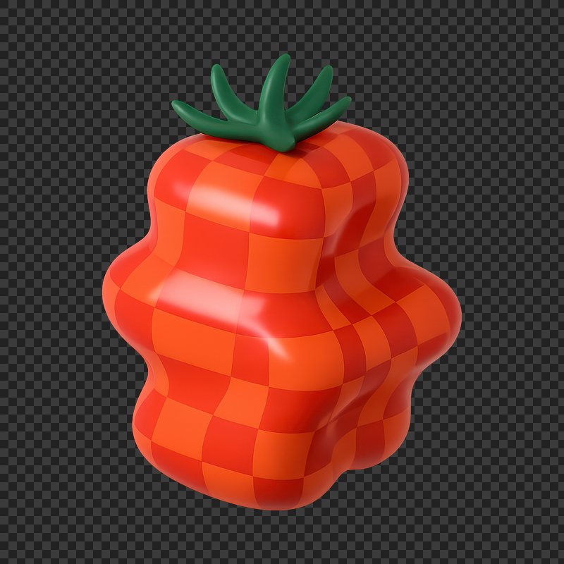 PNG Vibrant 3D checkered tomato illustration. https://www.rawpixel.com/image/24884035/png-vibrant-checkered-tomato-illustrationView license