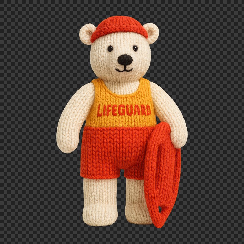 PNG Knitted bear lifeguard toy https://www.rawpixel.com/image/24521993/png-knitted-bear-lifeguard-toyView license