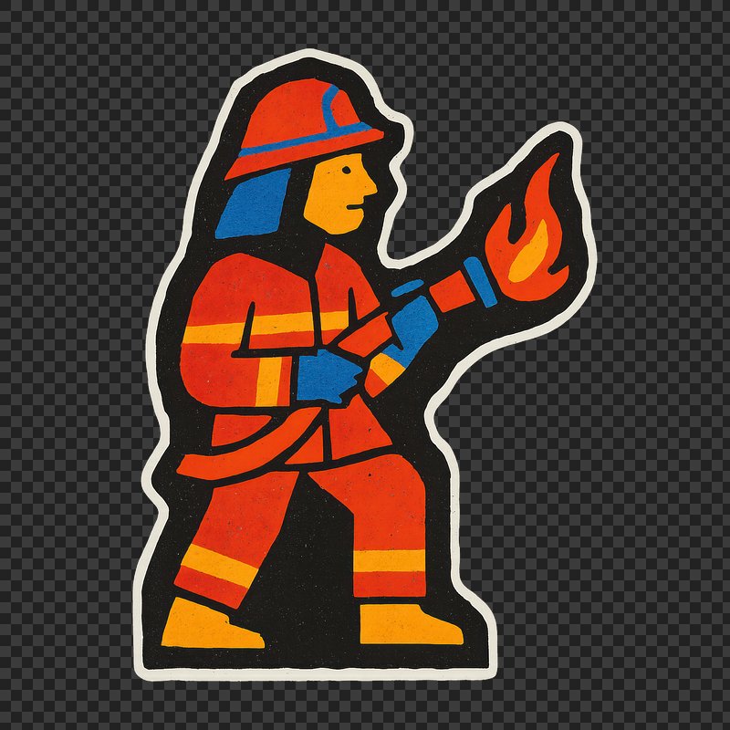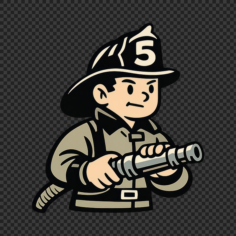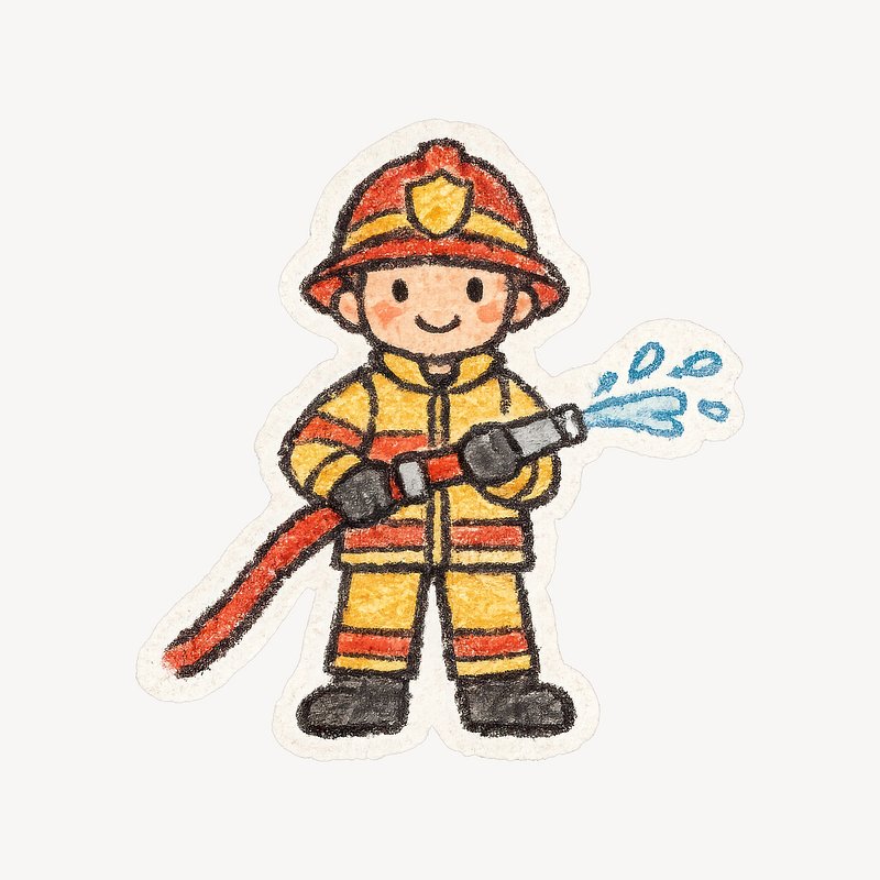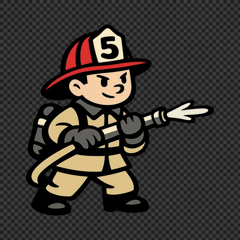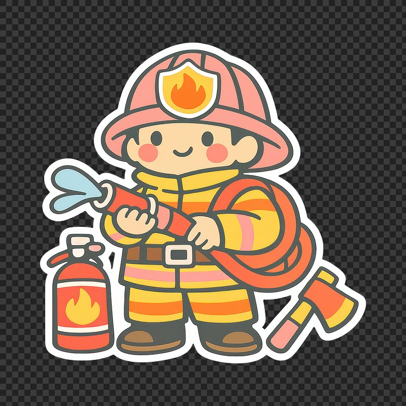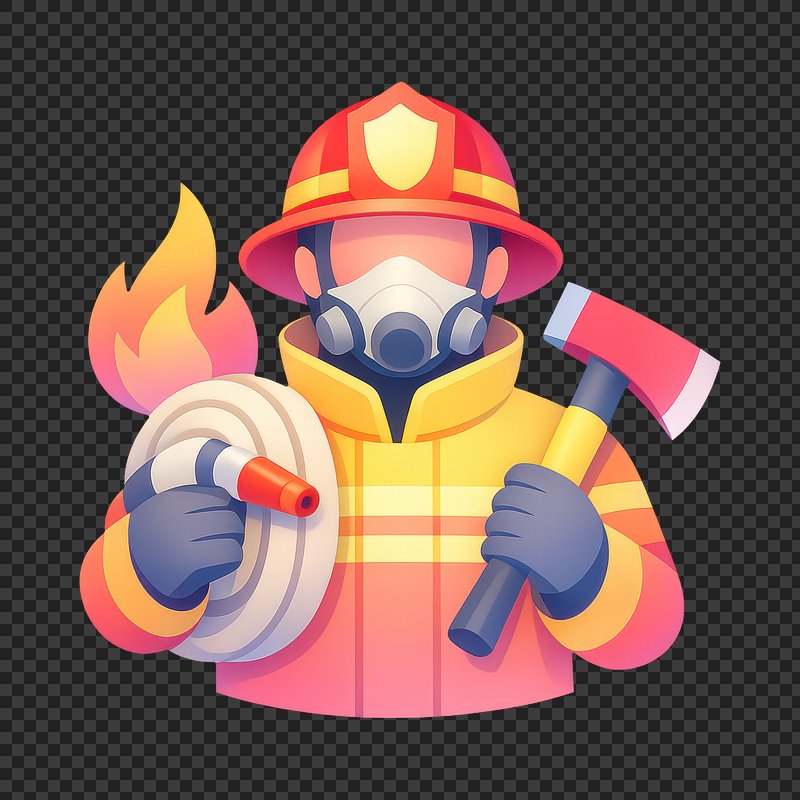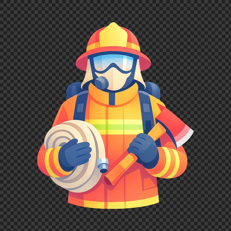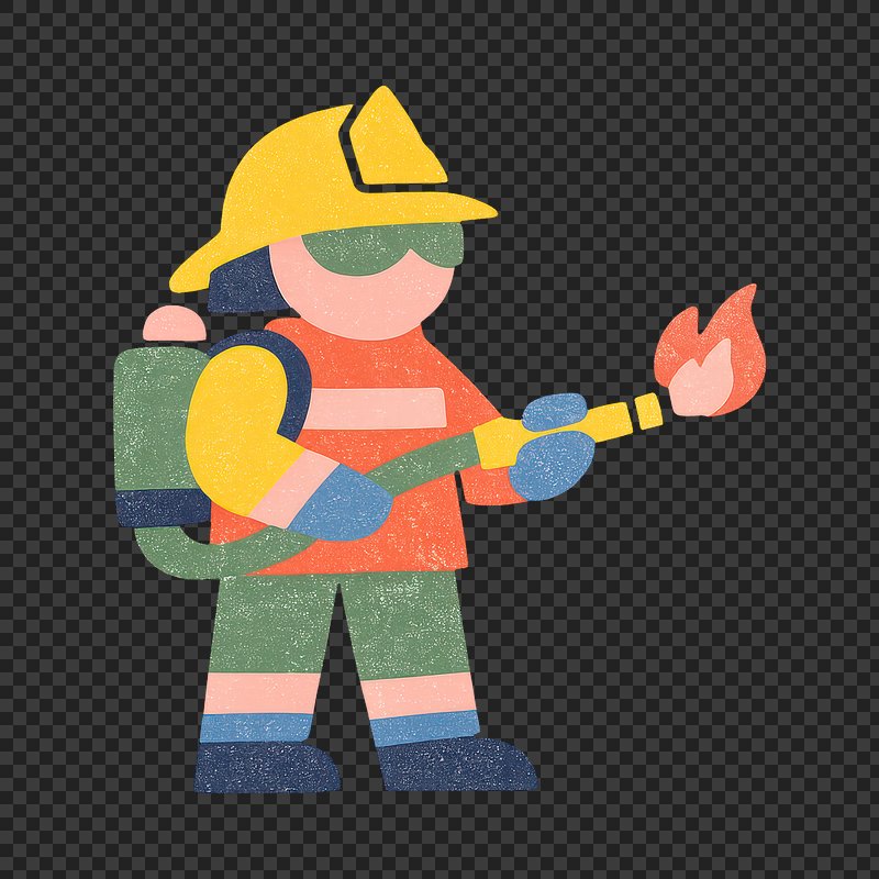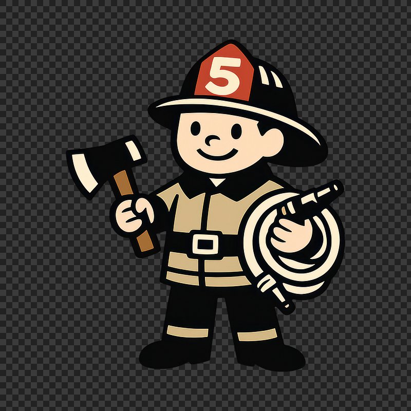 Cartoon firefighter holding tools. https://www.rawpixel.com/image/25758145/cartoon-firefighter-holding-toolsView license