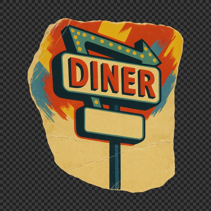 PNG Retro diner sign illustration https://www.rawpixel.com/image/24400122/png-retro-diner-sign-illustrationView license