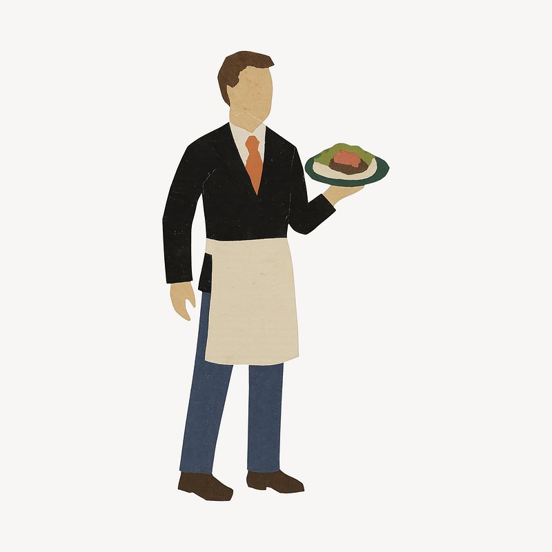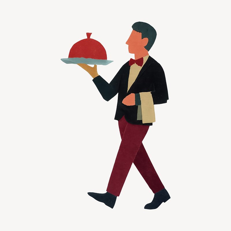 Waiter serving gourmet dish illustration. https://www.rawpixel.com/image/24526065/waiter-serving-gourmet-dish-illustrationView license
