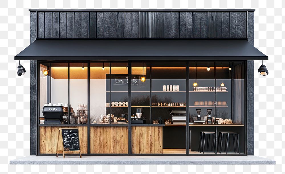 PNG Coffee shop facade contemporary architecture restaurant. https://www.rawpixel.com/image/16342642/png-coffee-shop-facade-contemporary-architecture-restaurantView license