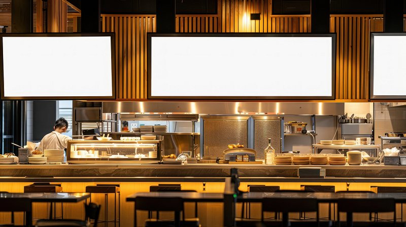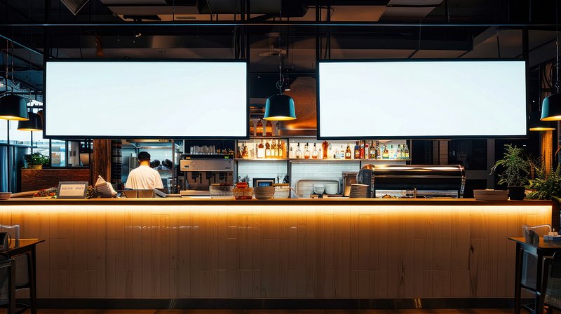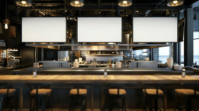 Modern restaurant counter with screens. https://www.rawpixel.com/image/25634135/modern-restaurant-counter-with-screensView license
