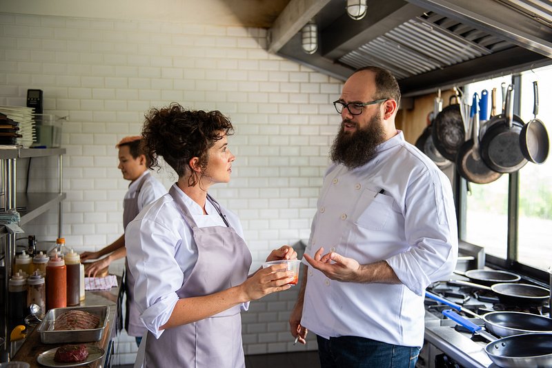 Restaurant manager checking food quality in the kitchen https://www.rawpixel.com/image/87897/chefs-restaurant-kitchenView license