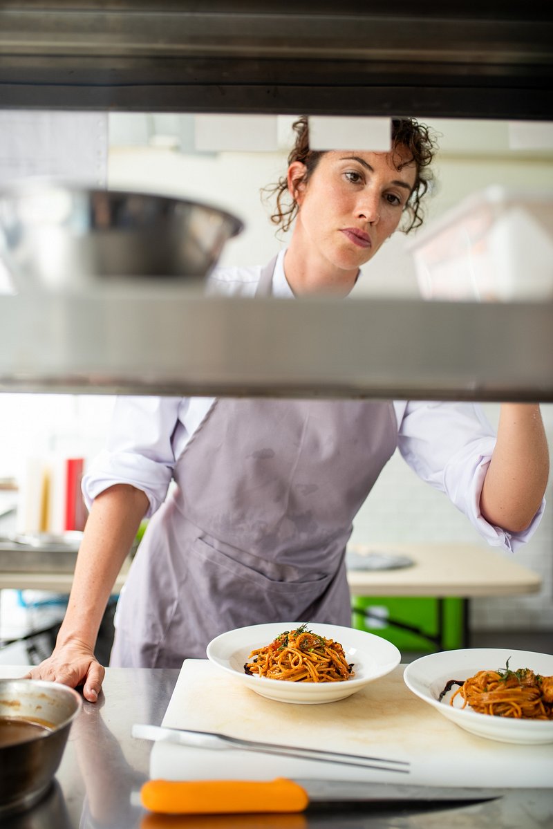 Chef garnishing pasta dish elegantly https://www.rawpixel.com/image/26050143/chef-garnishing-pasta-dish-elegantlyView license