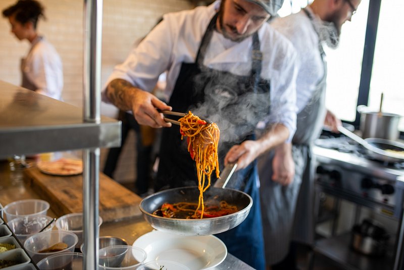 Chef cooking spagetti in the kitchen https://www.rawpixel.com/image/87892/chefs-restaurant-kitchenView license