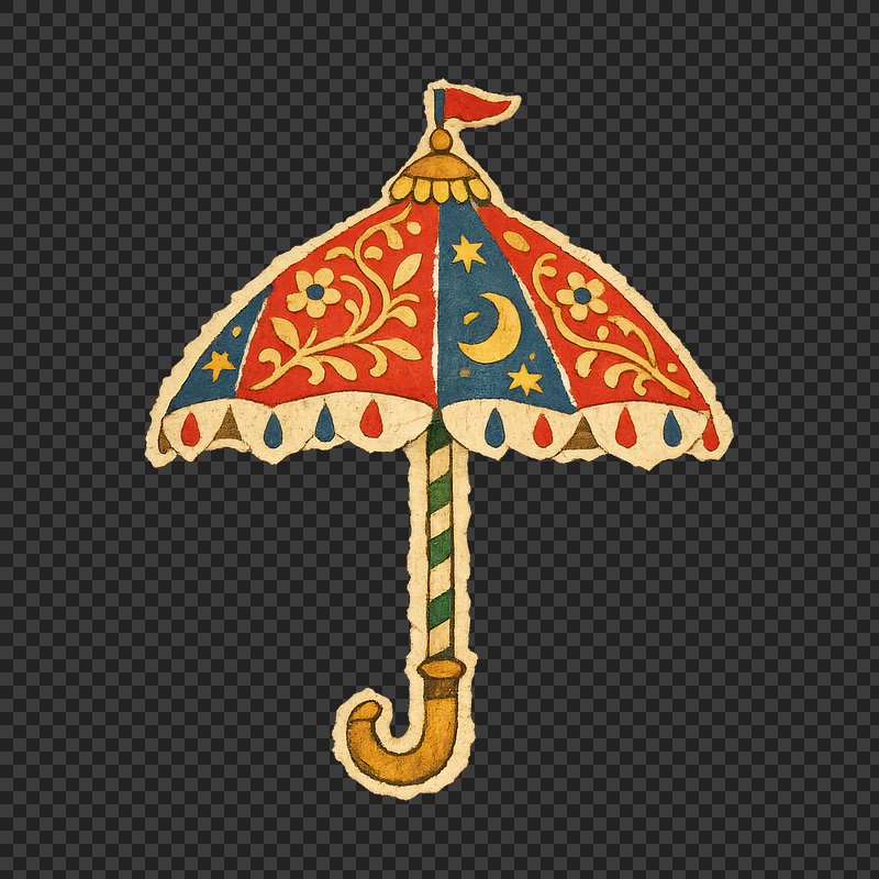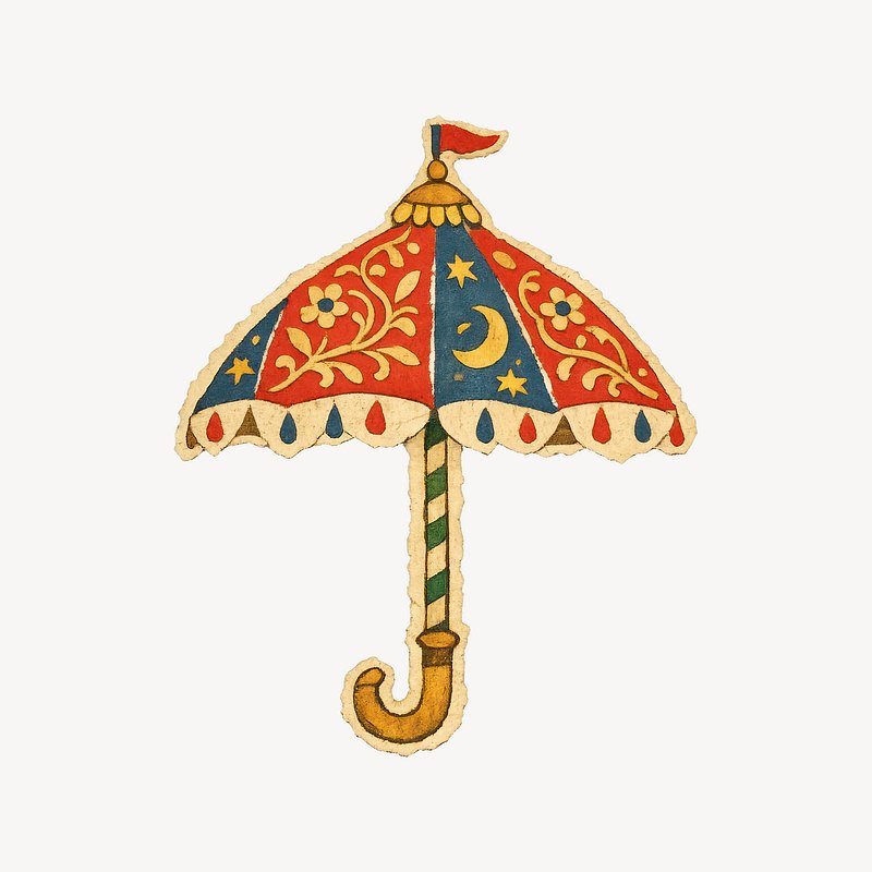 Colorful whimsical vintage umbrella illustration. https://www.rawpixel.com/image/25308080/colorful-whimsical-vintage-umbrella-illustrationView license