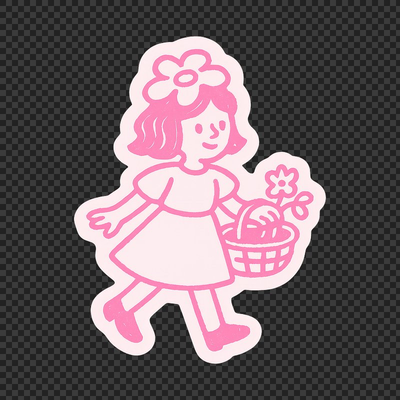 Pink cartoon girl with basket https://www.rawpixel.com/image/24787571/pink-cartoon-girl-with-basketView license