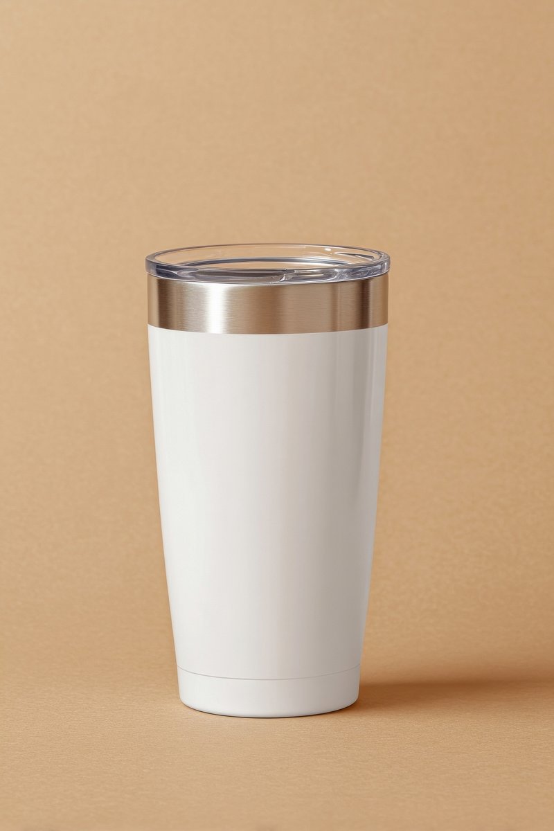 White insulated tumbler with lid. https://www.rawpixel.com/image/24702462/white-insulated-tumbler-with-lidView license