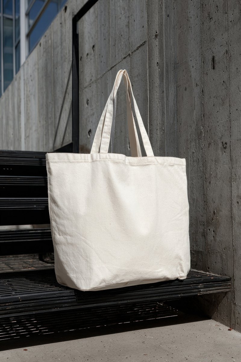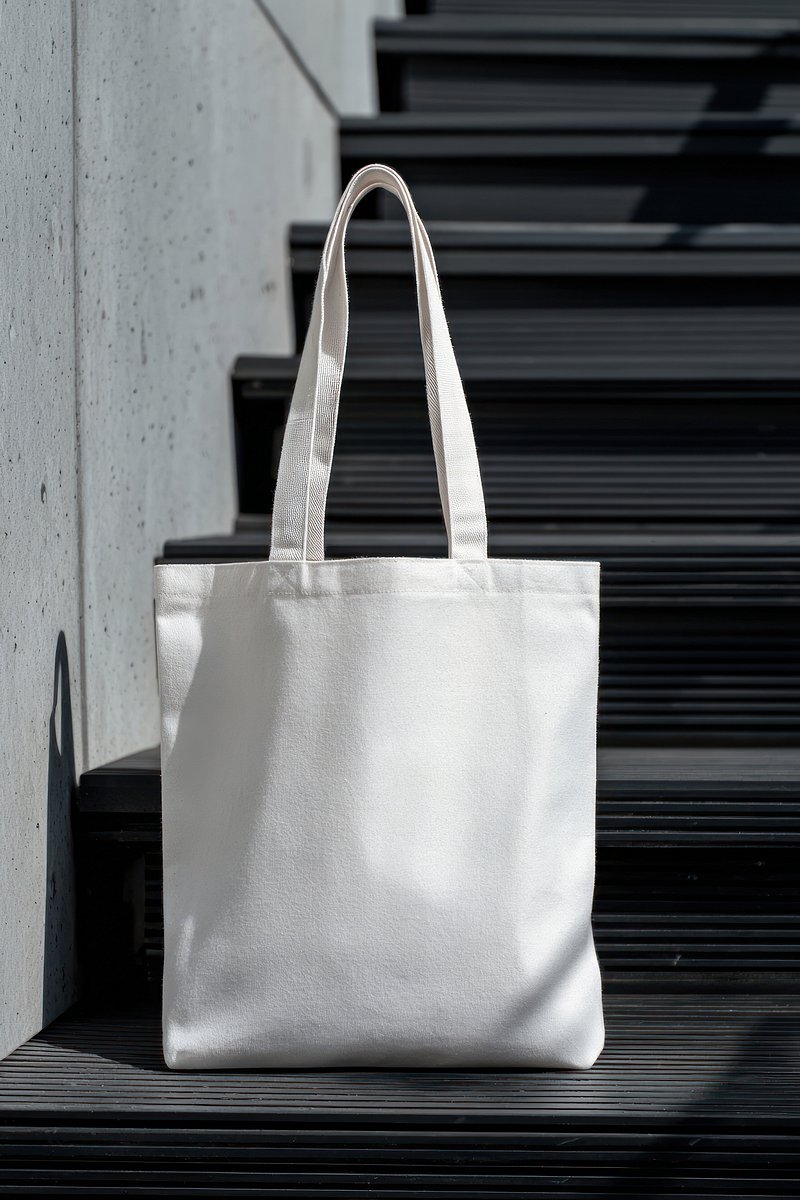 Canvas tote bag on stairs. https://www.rawpixel.com/image/24348310/canvas-tote-bag-stairsView license