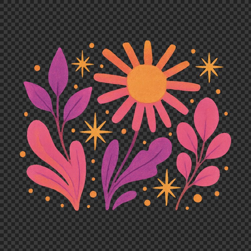 PNG Vibrant floral illustration with stars. https://www.rawpixel.com/image/24392985/png-vibrant-floral-illustration-with-starsView license