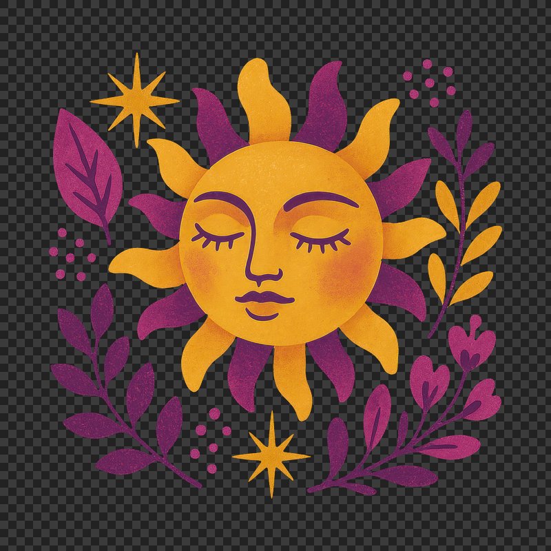 PNG Whimsical sun with foliage https://www.rawpixel.com/image/24393106/png-whimsical-sun-with-foliageView license
