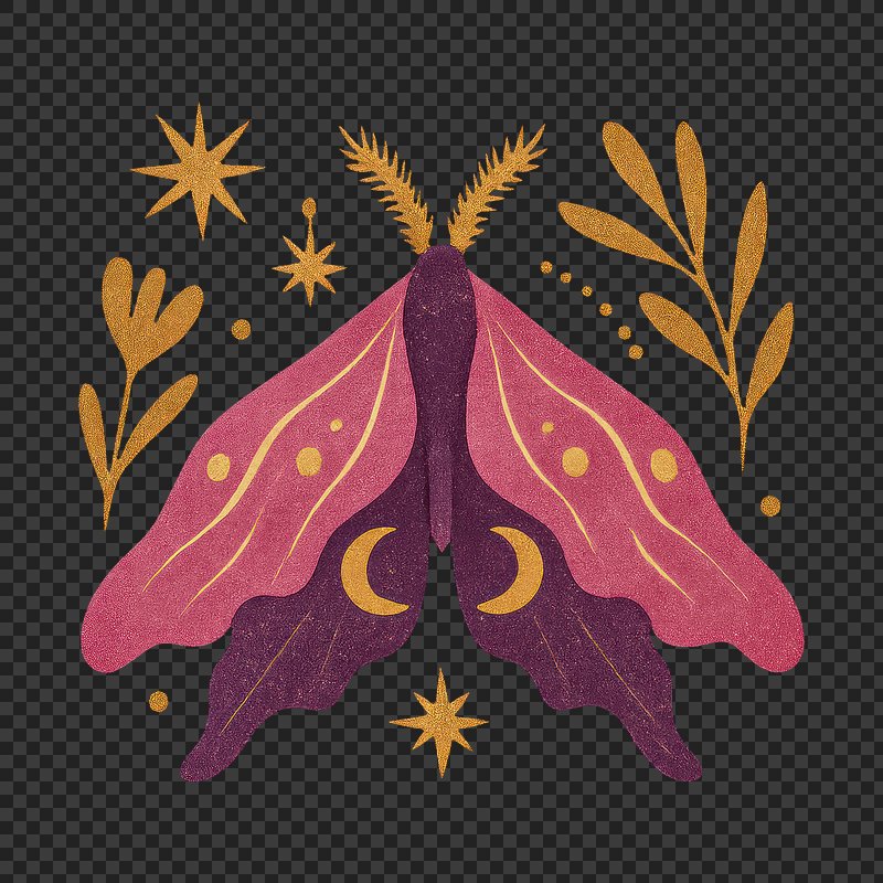 PNG Whimsical moth with celestial elements. https://www.rawpixel.com/image/24393255/png-whimsical-moth-with-celestial-elementsView license