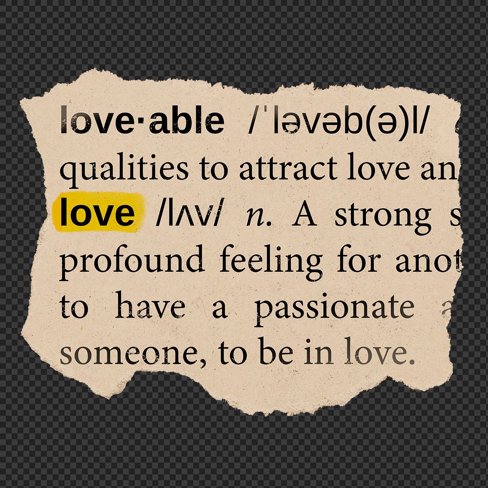 Love dictionary png ephemera collage element, transparent background https://www.rawpixel.com/image/6432450/png-torn-paper-stickerView license