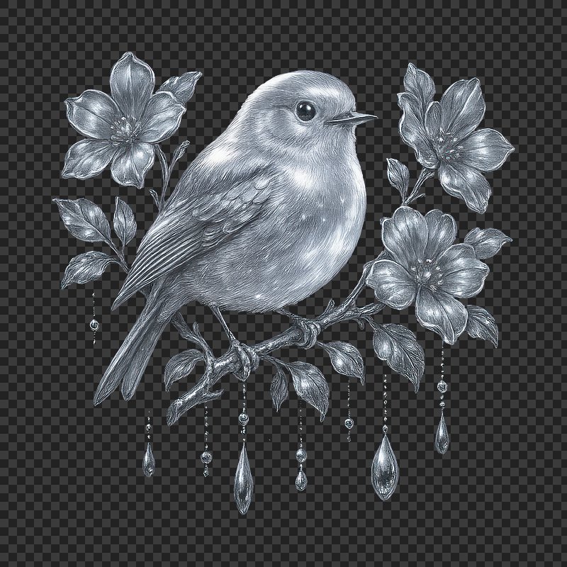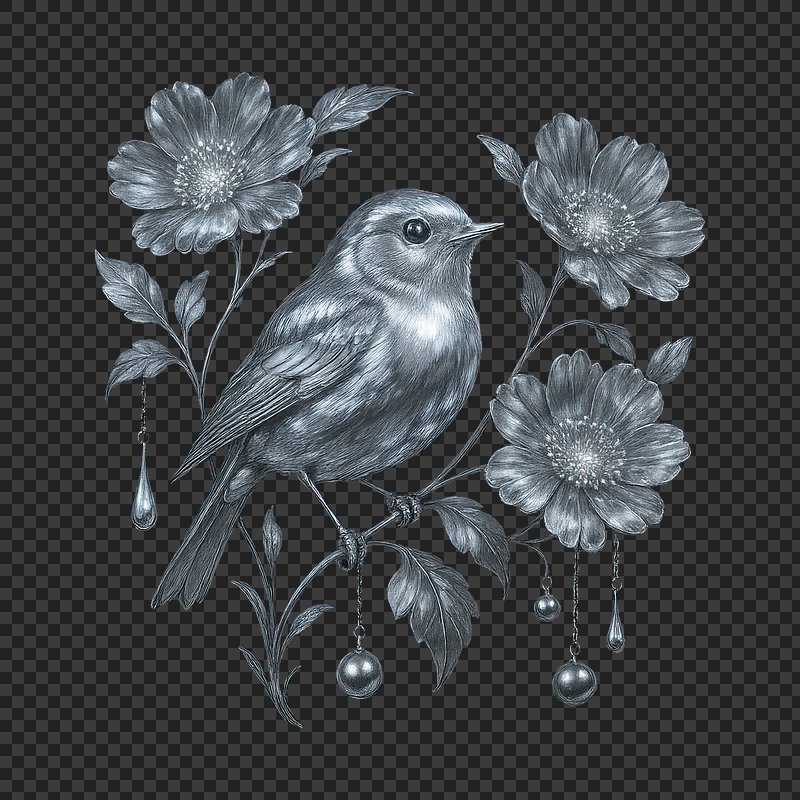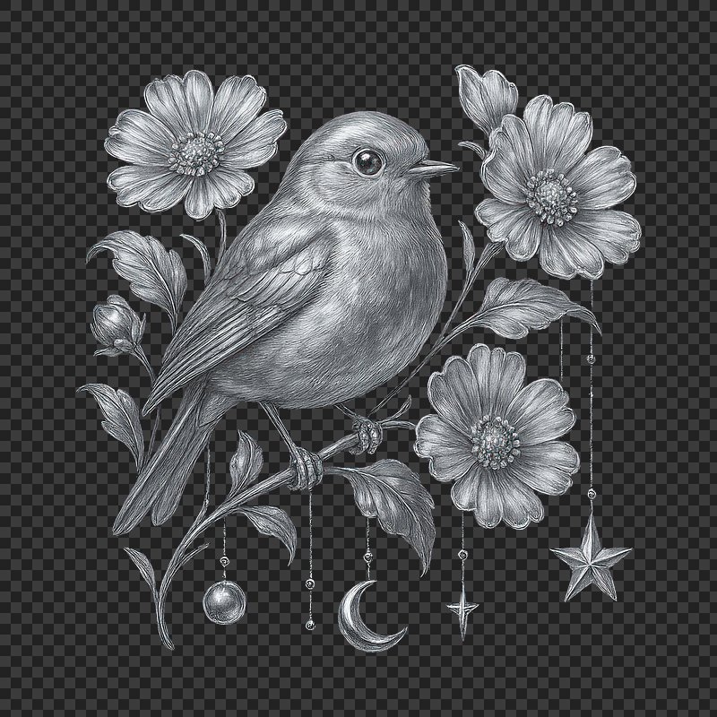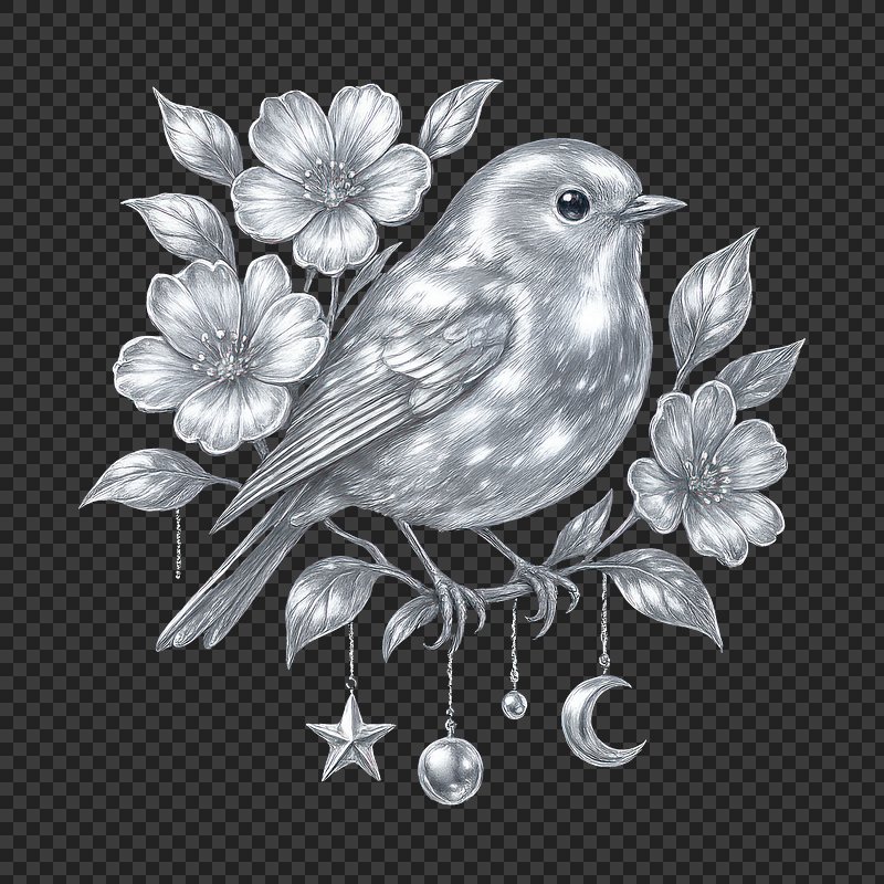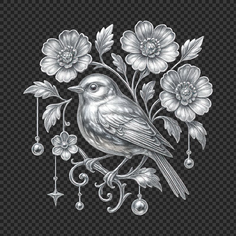 PNG Elegant bird with floral accents. https://www.rawpixel.com/image/23542790/png-elegant-bird-with-floral-accentsView license