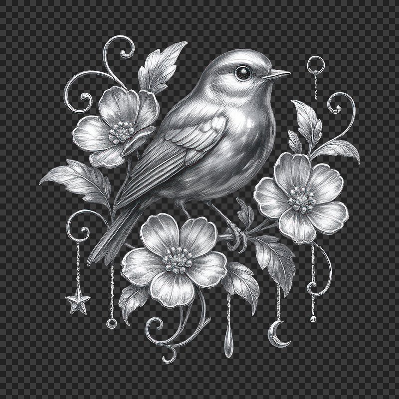 PNG Elegant bird with floral elements. https://www.rawpixel.com/image/23542859/png-elegant-bird-with-floral-elementsView license