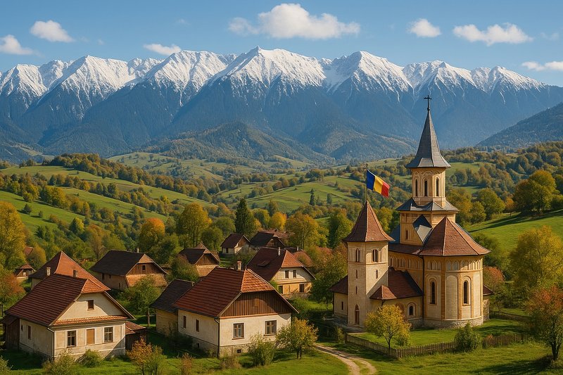Scenic Romanian village with mountains. https://www.rawpixel.com/image/18038131/scenic-romanian-village-with-mountainsView license