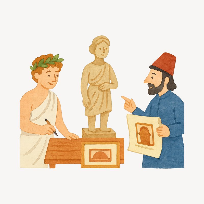 Ancient scholars examining sculpture. https://www.rawpixel.com/image/21187714/ancient-scholars-examining-sculptureView license