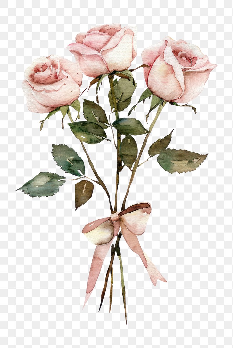 PNG Pink rose bouquet roses watercolor art. https://www.rawpixel.com/image/16810944/png-pink-rose-bouquet-roses-watercolor-artView license