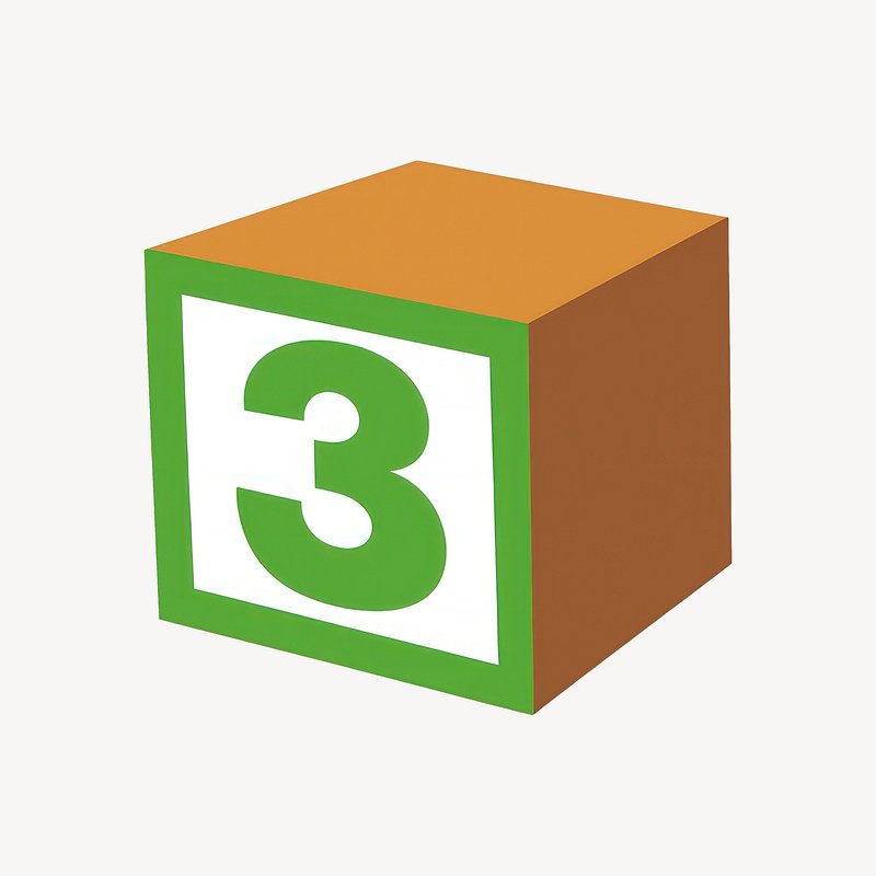 Colorful block with number three. https://www.rawpixel.com/image/25253397/colorful-block-with-number-threeView license