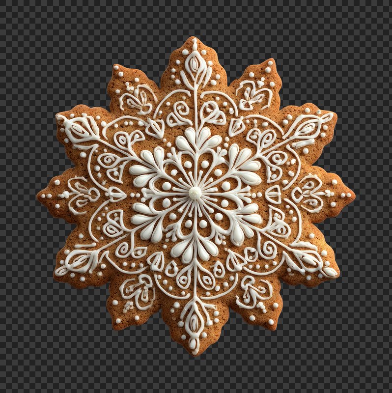 PNG Intricate gingerbread snowflake design. https://www.rawpixel.com/image/24022094/png-intricate-gingerbread-snowflake-designView license