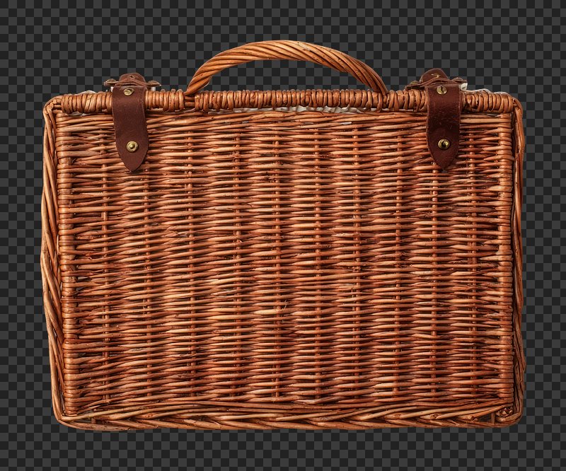 PNG Woven picnic basket with handle. https://www.rawpixel.com/image/24928791/png-woven-picnic-basket-with-handleView license