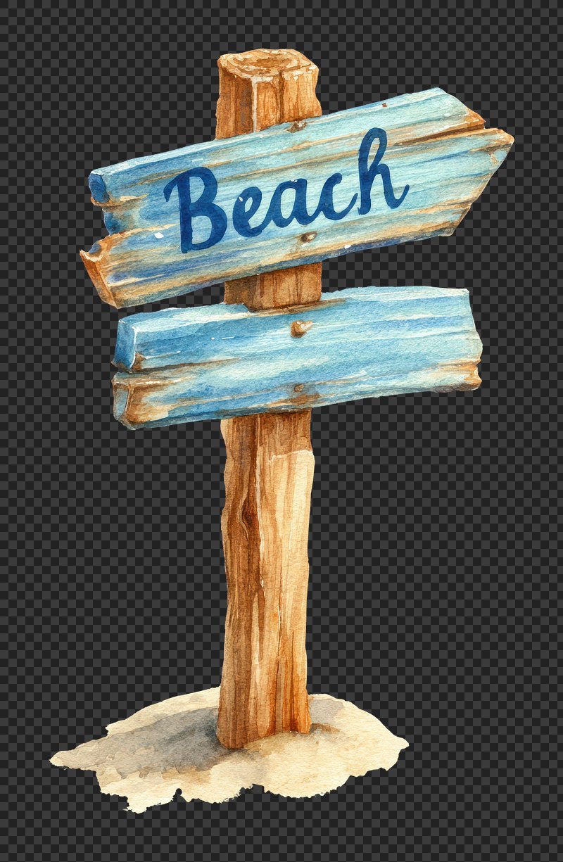 PNG Rustic beach sign watercolor illustration. https://www.rawpixel.com/image/25558949/png-rustic-beach-sign-watercolor-illustrationView license