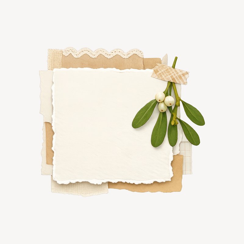 PNG Vintage paper with mistletoe decoration. https://www.rawpixel.com/image/25568572/png-vintage-paper-with-mistletoe-decorationView license