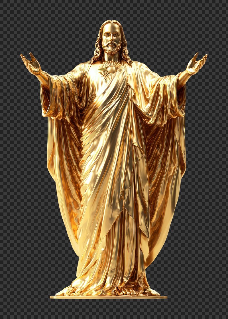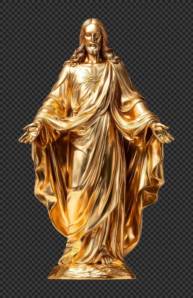 PNG Golden statue of Jesus Christ. https://www.rawpixel.com/image/21064376/png-golden-statue-jesus-christView license