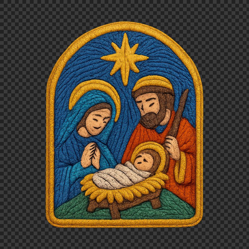 PNG Colorful embroidered nativity scene illustration. https://www.rawpixel.com/image/21448795/png-colorful-embroidered-nativity-scene-illustrationView license