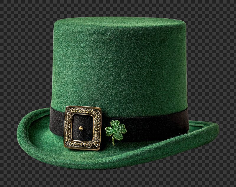 Green hat with shamrock buckle. https://www.rawpixel.com/image/24990890/green-hat-with-shamrock-buckleView license