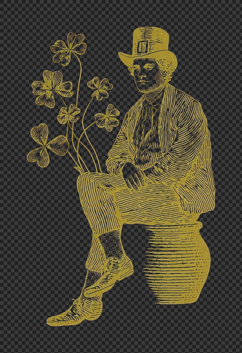 PNG Vintage leprechaun with clovers. https://www.rawpixel.com/image/25246517/png-vintage-leprechaun-with-cloversView license