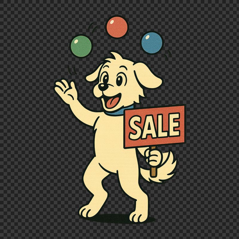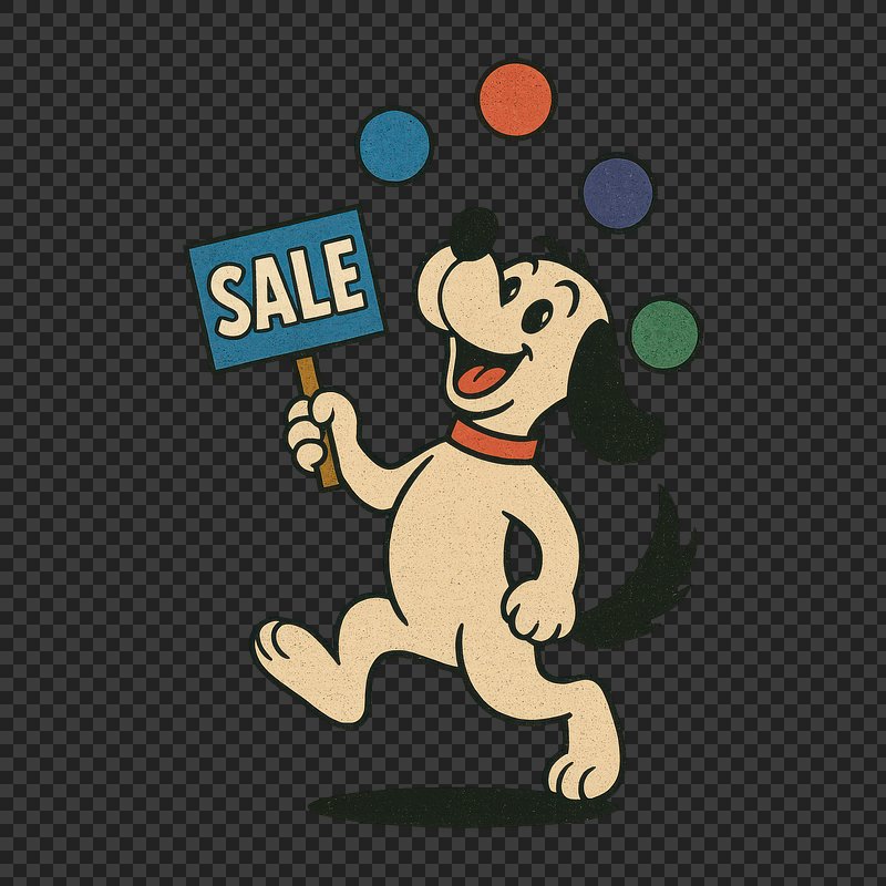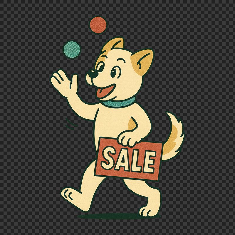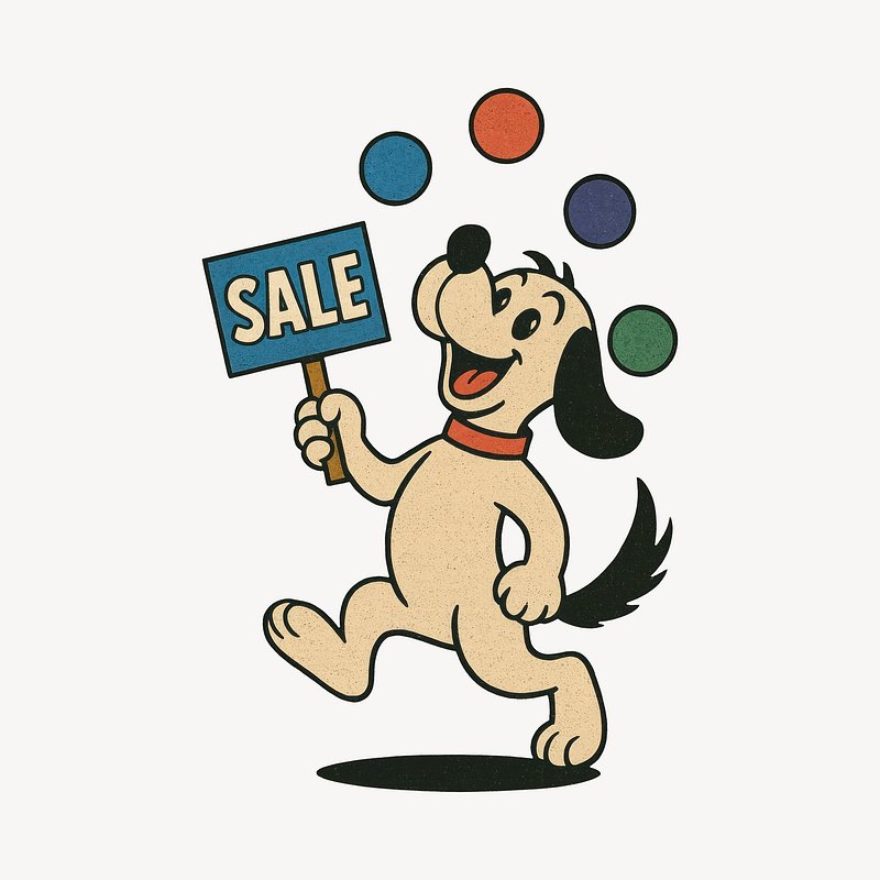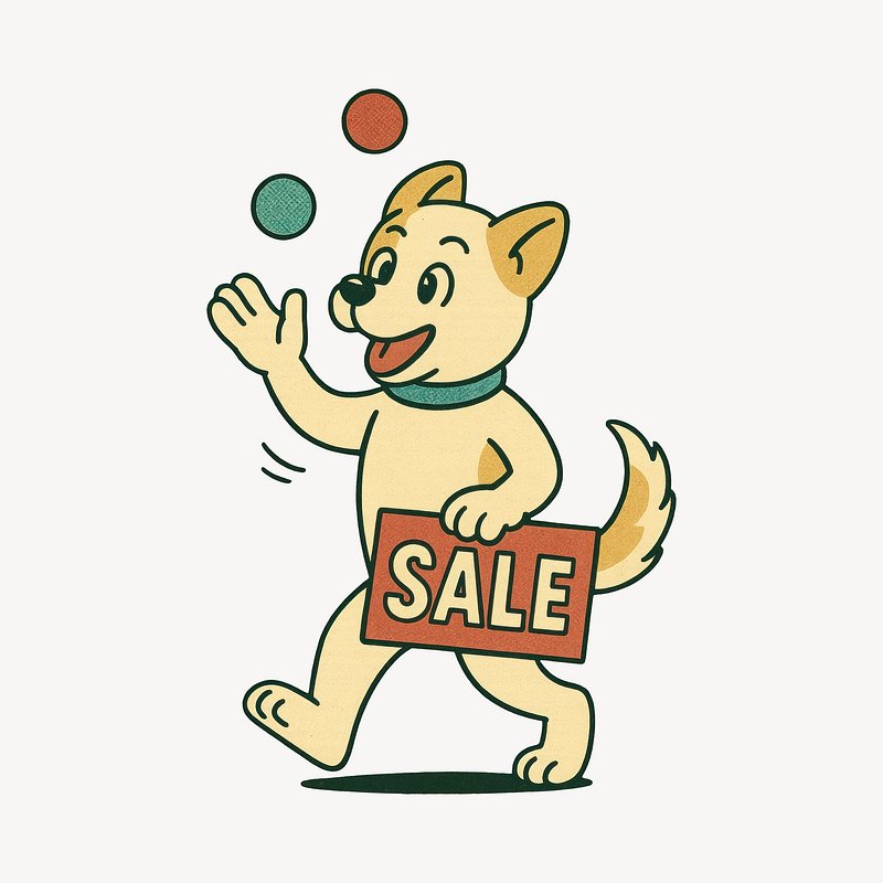 Dog juggling sale sign https://www.rawpixel.com/image/24714862/dog-juggling-sale-signView license
