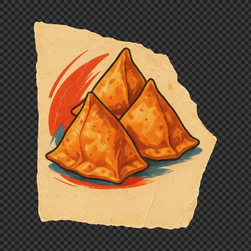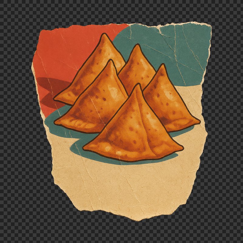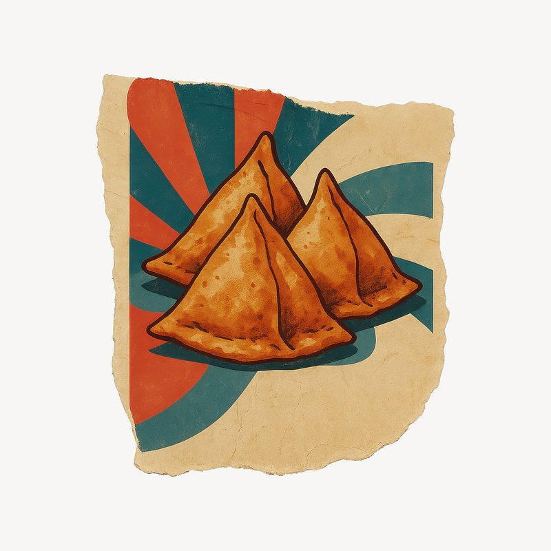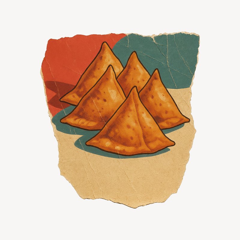 Retro samosas illustration on paper. https://www.rawpixel.com/image/24569626/retro-samosas-illustration-paperView license