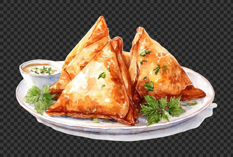 Watercolor samosa with cilantro garnish. https://www.rawpixel.com/image/24962228/watercolor-samosa-with-cilantro-garnishView license