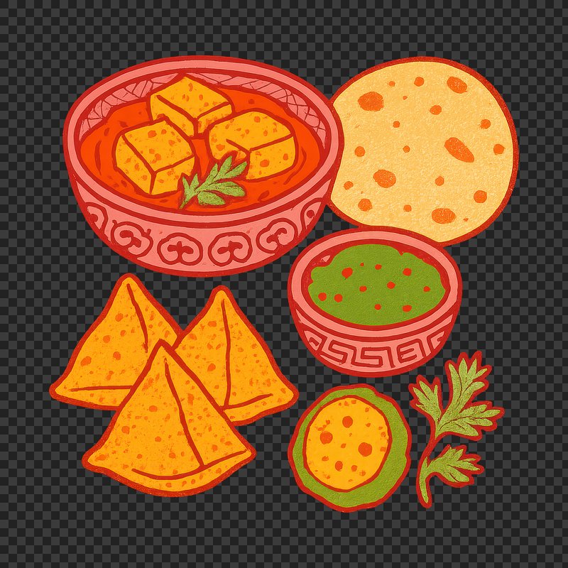PNG Colorful Indian snack illustration. https://www.rawpixel.com/image/24913308/png-colorful-indian-snack-illustrationView license