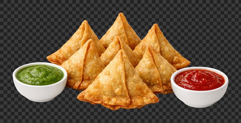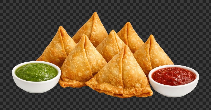 PNG Samosa on dish food appetizer condiment. https://www.rawpixel.com/image/13644716/png-samosa-dish-food-appetizer-condimentView license