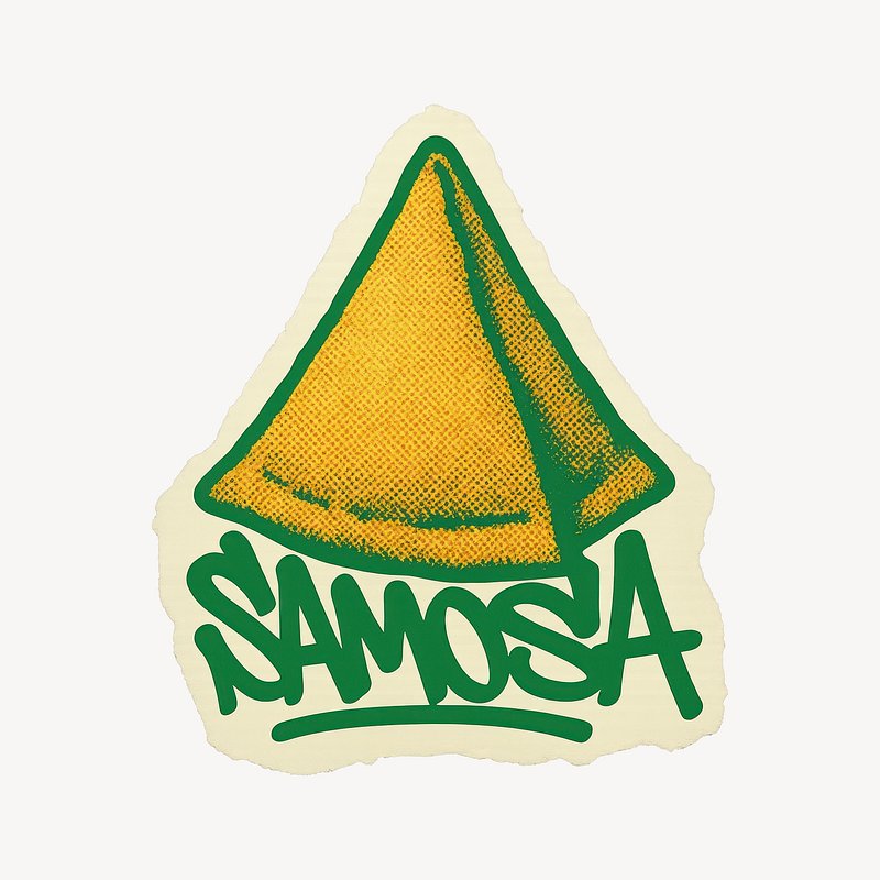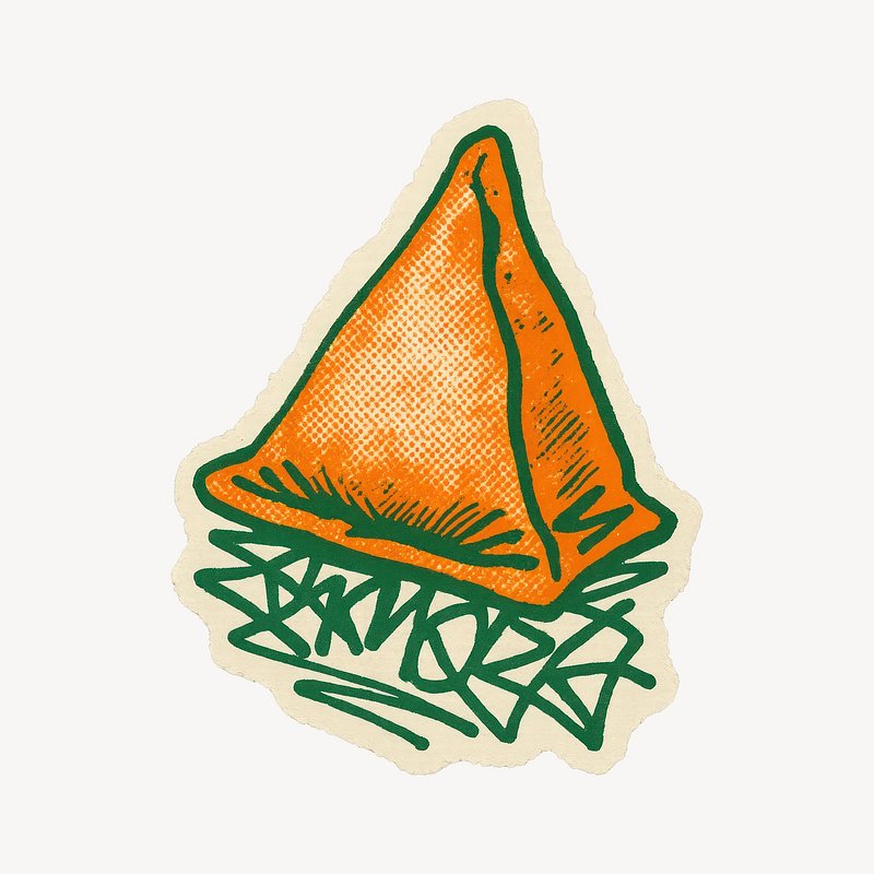 Artistic samosa sticker design. https://www.rawpixel.com/image/24654622/artistic-samosa-sticker-designView license