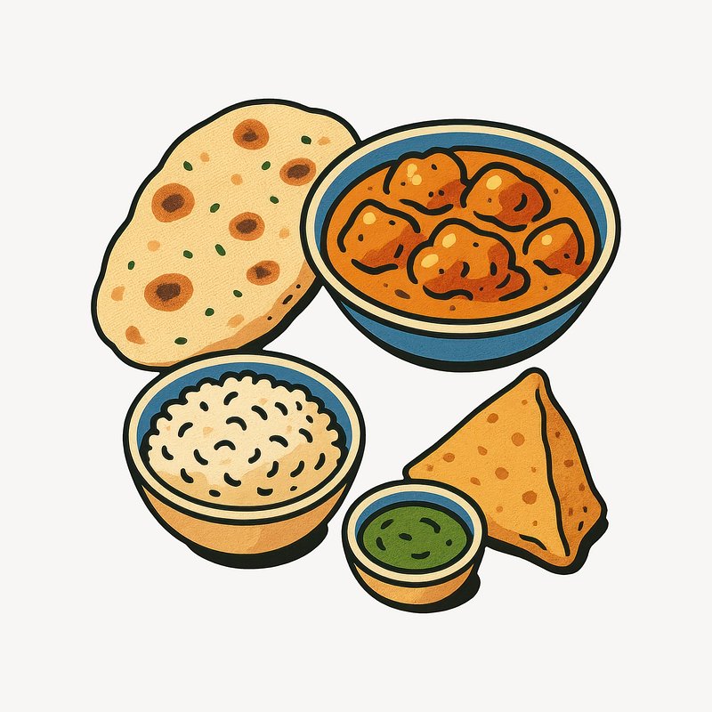 Illustrated Indian cuisine variety. https://www.rawpixel.com/image/24719337/illustrated-indian-cuisine-varietyView license