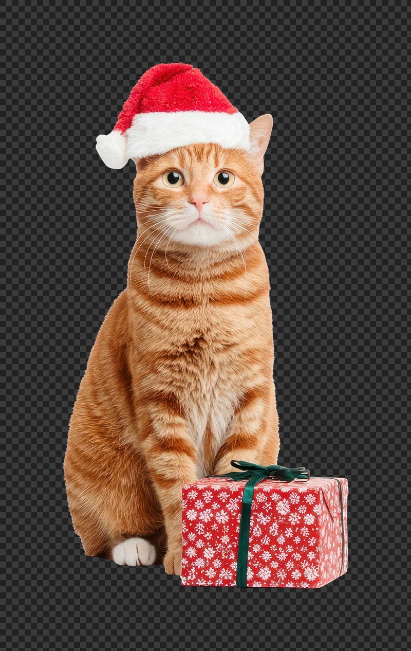 PNG Festive cat with Christmas gift. https://www.rawpixel.com/image/22827032/png-festive-cat-with-christmas-giftView license
