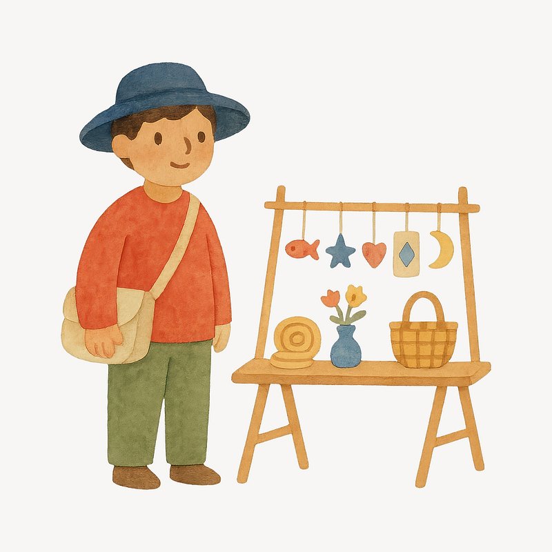 Handmade crafts vendor illustration. https://www.rawpixel.com/image/20666475/handmade-crafts-vendor-illustrationView license