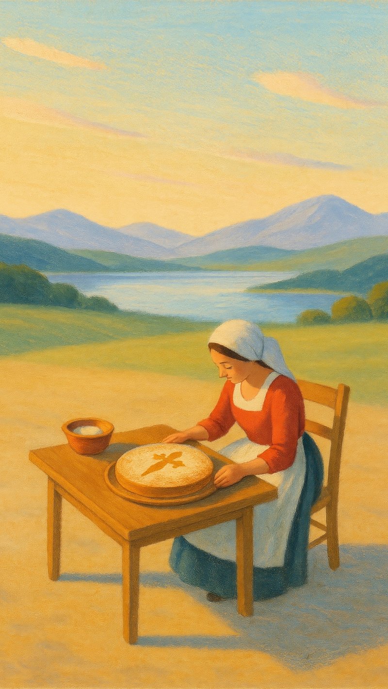 Pastoral scene with baking woman. https://www.rawpixel.com/image/22647972/pastoral-scene-with-baking-womanView license