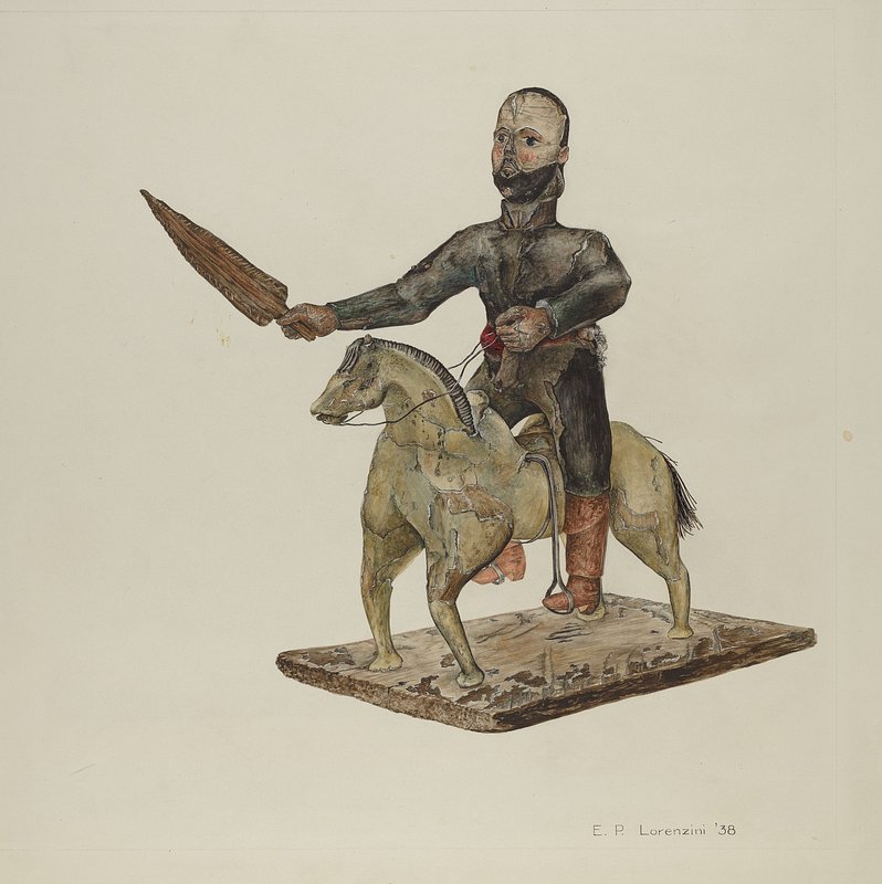Santo Bulto (Santiago or San Diego) (1938) by Eldora P Lorenzini https://www.rawpixel.com/image/10081350/santo-bulto-santiago-san-diego-1938-eldora-lorenziniFree Image from public domain license