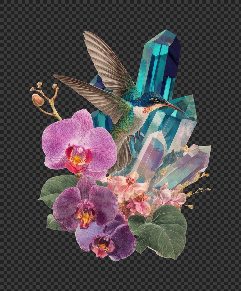 PNG Illustration hummingbird botanical crystals. https://www.rawpixel.com/image/21920538/png-illustration-hummingbird-botanical-crystalsView license