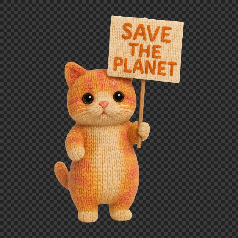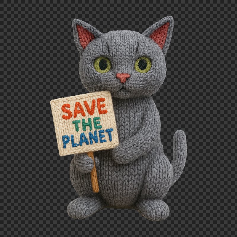 PNG Knitted cat holding protest sign. https://www.rawpixel.com/image/24522578/png-knitted-cat-holding-protest-signView license