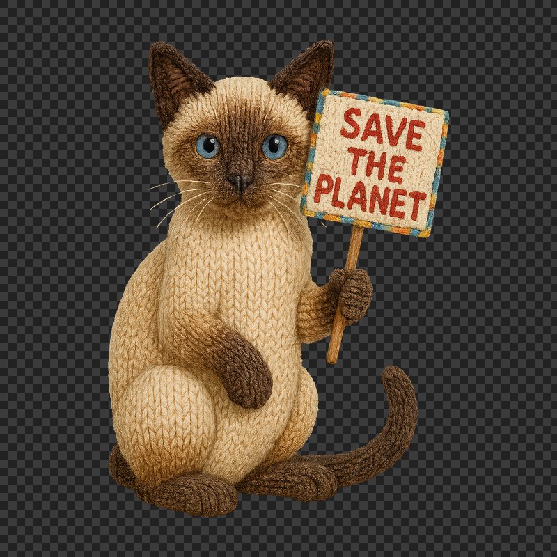 PNG Knitted cat holding protest sign. https://www.rawpixel.com/image/24521467/png-knitted-cat-holding-protest-signView license