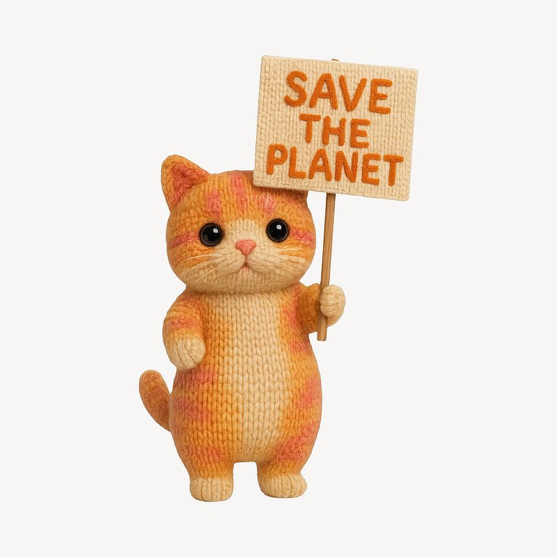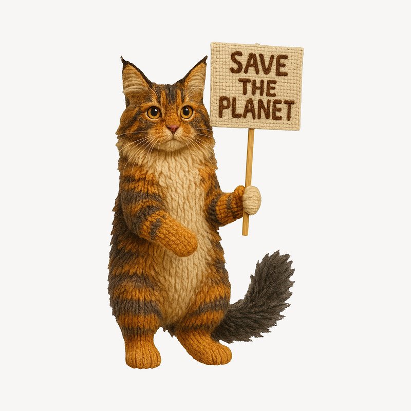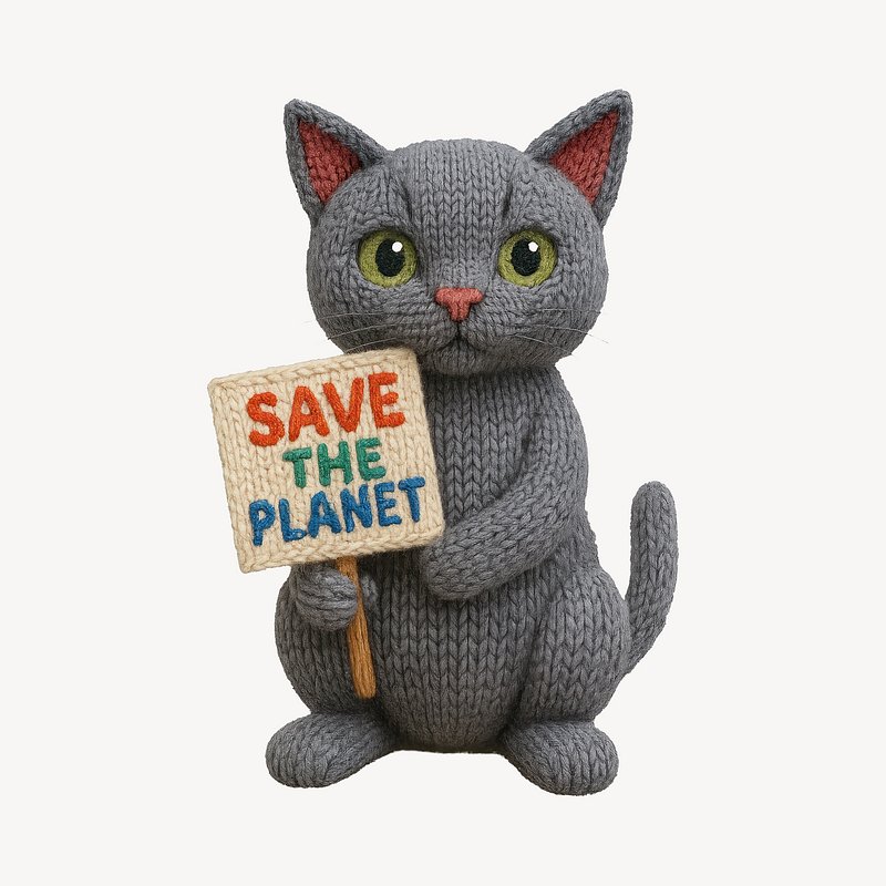 Knitted cat holding protest sign. https://www.rawpixel.com/image/24605278/knitted-cat-holding-protest-signView license