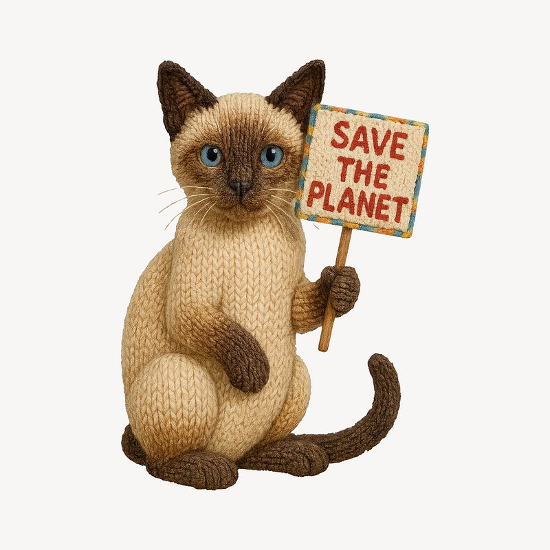 Knitted cat holding protest sign. https://www.rawpixel.com/image/24604581/knitted-cat-holding-protest-signView license