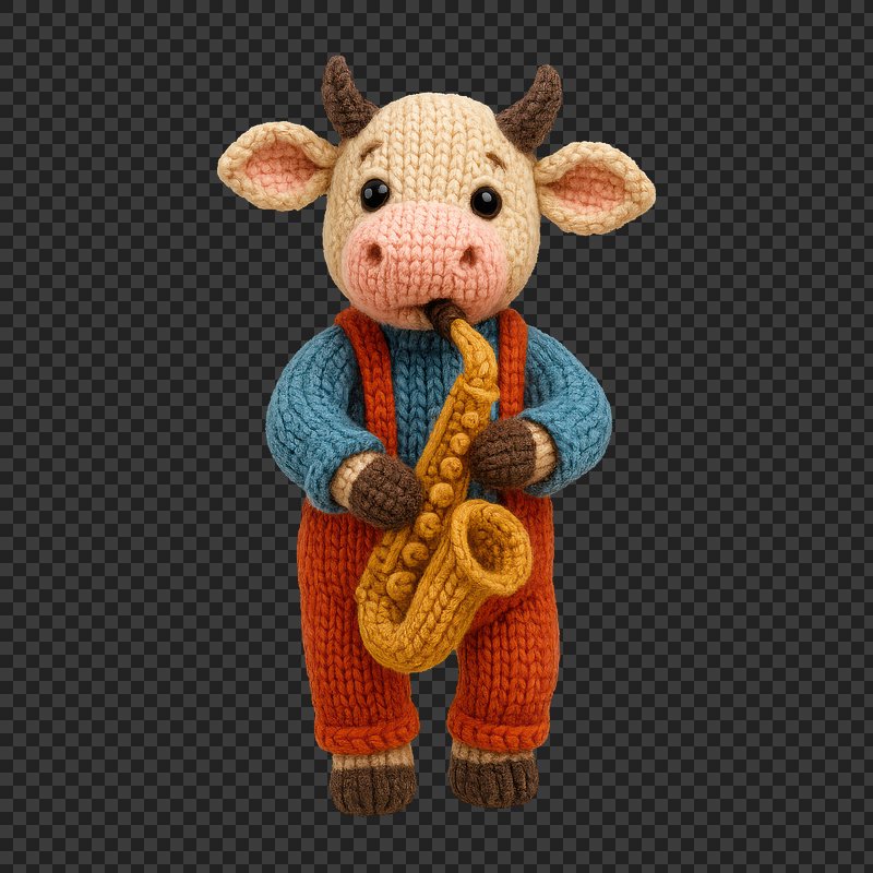 Knitted cow playing saxophone https://www.rawpixel.com/image/24531406/knitted-cow-playing-saxophoneView license